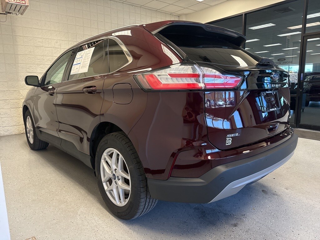 Certified. Burgundy Velvet Metallic Tinted Clearcoat 2022 Ford Edge SEL 2.0 Liter EcoBoost AWD Leather Seating AWD 8-Speed Automatic EcoBoost 2.0L I4 GTDi DOHC Turbocharged VCT AWD, 110V/150W AC Power Outlet, Convenience Package, Equipment Group 201A, Fog Lamps w/Chrome Bezel, Front dual zone A/C, Heated door mirrors, Heated front seats, Heated Steering Wheel, Perimeter Alarm, Power Liftgate, Rear Parking Sensors, Remote Start System, SecuriCode Keyless Entry Keypad, Universal Garage Door Opener (UGDO), Wireless Charging Pad.