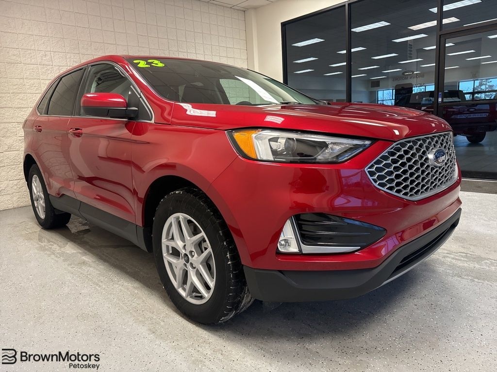 Certified. Rapid Red Metallic Tinted Clearcoat 2023 Ford Edge SEL 2.0 Liter EcoBoost Turbocharged AWD Leather Seatin AWD 8-Speed Automatic EcoBoost 2.0L I4 GTDi DOHC Turbocharged VCT AWD, 110V/150W AC Power Outlet, Class II Trailer Tow Package, Front dual zone A/C, Heated front seats, Heated Steering Wheel, Power Liftgate, Rear Parking Sensors, Remote Start System, Wireless Charging Pad.
