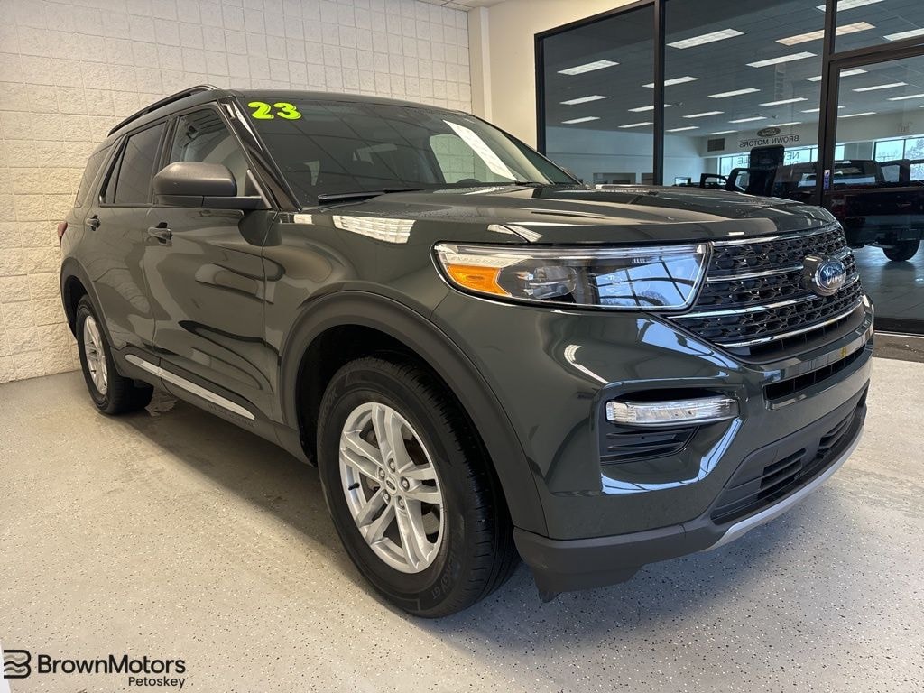 Certified. Forged Green Metallic 2023 Ford Explorer XLT 2.3 Liter EcoBoost 4WD 4WD 10-Speed Automatic 2.3L EcoBoost I-4 4WD, Exterior Parking Camera Rear, Front dual zone A/C, Heated door mirrors, Heated front seats, Heated Steering Wheel, Power Liftgate, SYNC 3 Communications & Entertainment System.