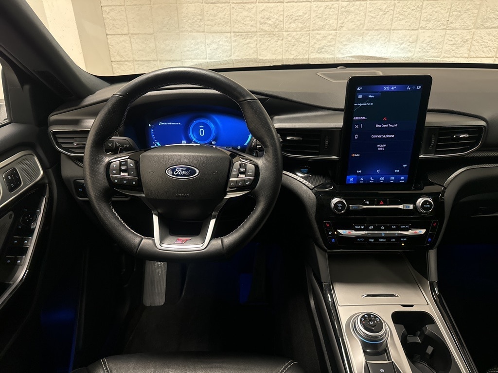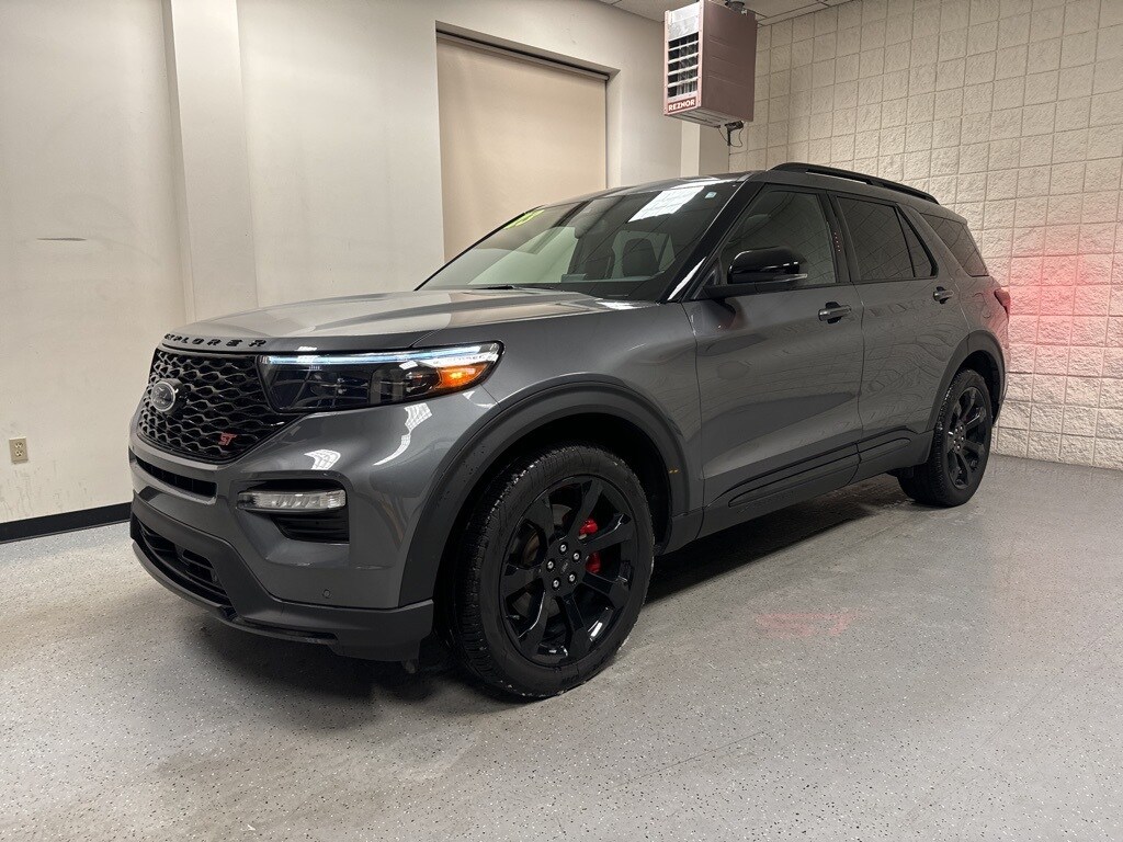 Certified. Carbonized Gray Metallic 2023 Ford Explorer ST 4WD 10-Speed Automatic 3.0L EcoBoost V6 4WD, 110V/150W AC Power Outlet, 360-Degree Camera w/Split View, Auto-Dimming Rearview Mirror (Interior), Equipment Group 401A, Evasive Steering Assist, Ford Co-Pilot360 Assist+, Front Parking Sensors, Front Rain-Sensing Wipers, Intelligent Adaptive Cruise Control, Memory Driver's Seat, Performance Front & Rear Brakes, Power Tilt/Telescoping Steering Column, Radio: B&O Sound System by Bang & Olufsen, Reverse Brake Assist, Second Row Heated Seats, Sideview Mirrors w/Gloss Black Caps, Speed Sign Recognition, ST High Package, ST Street Pack, Third Row PowerFold (Folds Flat), Universal Garage Door Opener (UGDO), Voice-Activated Touchscreen Navigation System, Wheels: 21" Aluminum, Wireless Charging Pad.