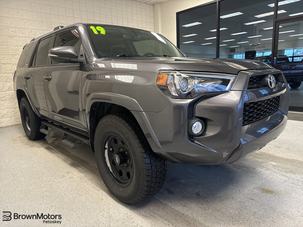 Certified. Magnetic Gray Metallic 2019 Toyota 4Runner SR5 4.0 Liter V6 4WD 4WD 5-Speed Automatic with Overdrive 4.0L V6 SMPI DOHC 4WD, Graphite Leather, 17" x 7.0" 6-Spoke Alloy Wheels, ABS brakes, Alloy wheels, Electronic Stability Control, Heated door mirrors, Illuminated entry, Low tire pressure warning, Remote keyless entry, Traction control.