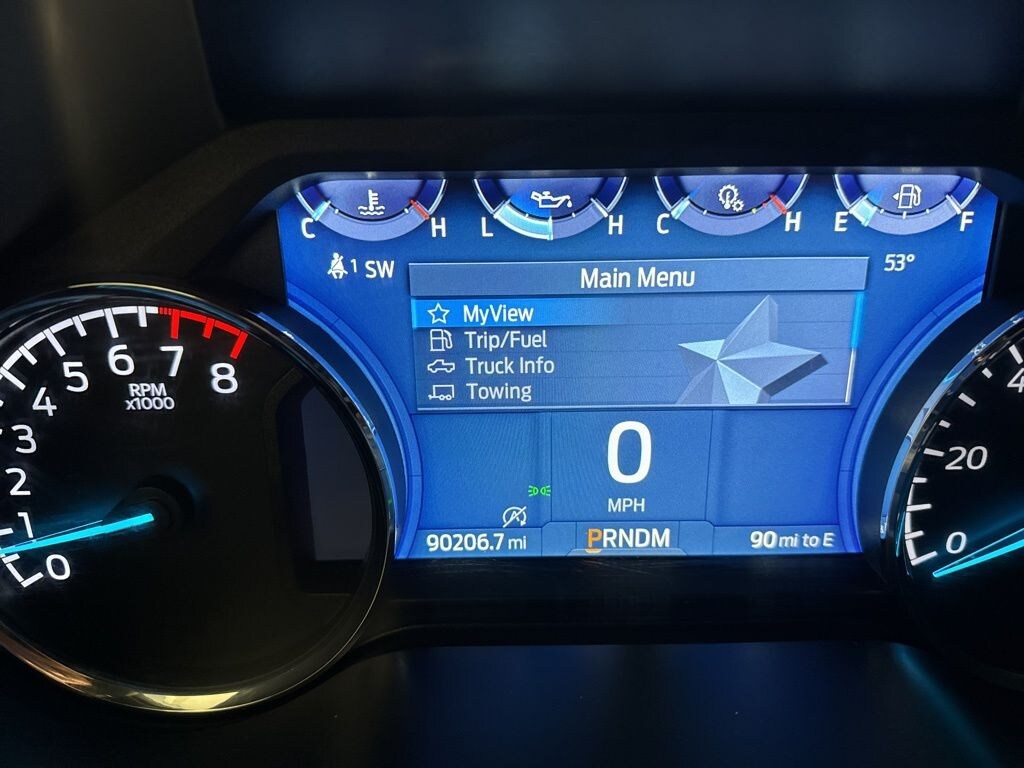 The interior of this F-150 is packed with premium features that will keep you comfortable and connected. From the 8-inch productivity screen in the instrument cluster to the SYNC 4 infotainment system, you'll have all the technology you need at your fingertips. The leather-wrapped steering wheel and 10-way power-adjustable seats provide a luxurious and customizable driving experience.