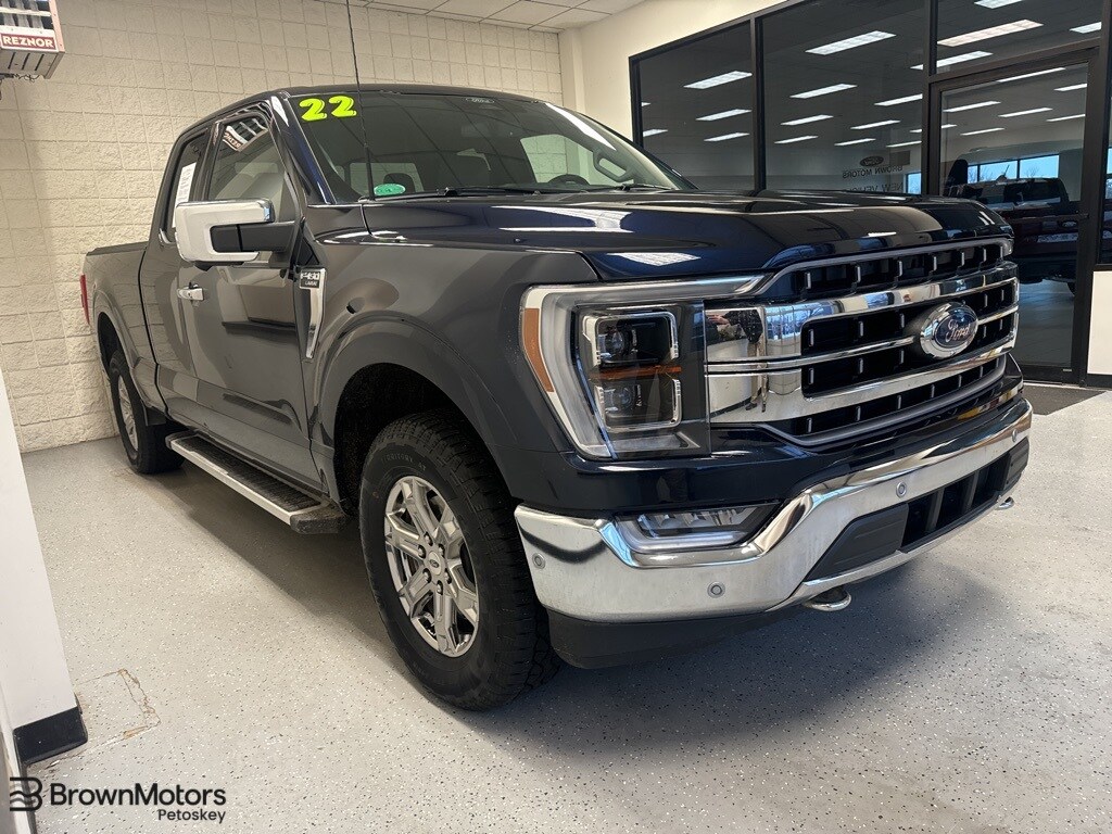 Certified. Antimatter Blue Metallic 2022 Ford F-150 Lariat 3.5 Liter V6 EcoBoost SuperCab 4WD 4WD 10-Speed Automatic 3.5L V6 EcoBoost 4WD, 360 Degree Camera, BoxLink, Class IV Trailer Hitch Receiver, Front dual zone A/C, Heated front seats, Heated Steering Wheel, Integrated Trailer Brake Controller, Navigation System, Onboard 400W Outlet, Power Tailgate, Pro Trailer Backup Assist, Radio: B&O Sound System by Bang & Olufsen, SYNC 4 w/Enhanced Voice Recognition, Tailgate Step w/Tailgate Work Surface, Ventilated front seats, Wireless Charging Pad.