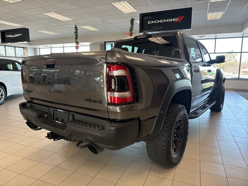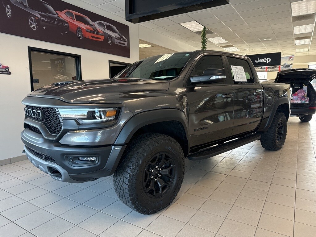 Granite Crystal Metallic Clearcoat 2022 Ram 1500 TRX 6.2 Liter V8 Hemi Supercharged Crew Cab 4WD 4WD 8-Speed Automatic 6.2L Supercharged HEMI V8 SRT #2 Seat Foam Cushion, 2-Door Passive Entry, Front Door Locks, 4 Way Front Headrests, Bed Utility Group, Blind Spot & Cross Path Detection, Body Color Door Handles, Bucket Seats, Center Console Parts Module, Digital Rearview Mirror, Driver Seat Memory, Driver/Passenger Wrapped Assist Handles, Exterior Mirrors w/Memory, Front Door Accent Lighting, Front Seat Back Map Pockets, Full Length Premium Upgraded Floor Console, harman/kardon 19 Speaker Premium Sound, Heads-Up Display, Heated Front Seats, Heated Second Row Seats, Heated Steering Wheel, IP LED Ambient Light Pipe, Leather Trimmed Bucket Seats, Leather/Suede Flat-Bottom Steering Wheel, LED CHMSL Lamp, Luxury Front Door Trim Panel, MOPAR 4 Adjustable Cargo Tie-Down Hooks, MOPAR Bright Pedal Kit, MOPAR Deployable Bed Step, MOPAR Spray In Bedliner, ParkSense Front/Rear Park Assist w/Stop, Pick-Up Box Lighting, Power 4-Way Driver Lumbar Adjust, Power 4-Way Passenger Lumbar Adjust, Power 8-Way Driver & Passenger Seats, Power Adjustable Pedals w/Memory, Premium Wrapped IP Bezel, Quick Order Package 29Y, Radio/Driver Seat/Mirrors/Pedals Memory, Rain Sensitive Windshield Wipers, Rear 60/40 Folding Seat, Rear 60/40 Folding Split Recline Seat, Rear Door Accent Lighting, Rear Underseat Compartment Storage, Rear Window Defroster, Remote Tailgate Release, Sun Visors w/Illuminated Vanity Mirrors, Surround View Camera System, Trailer Brake Control, Trailer Light Check, Trailer Tire Pressure Monitoring System, Trailer Tow Group, TRX Level 2 Equipment Group, Universal Garage Door Opener, Ventilated Front Seats, Ventilated Rear Seats, Wireless Charging Pad.